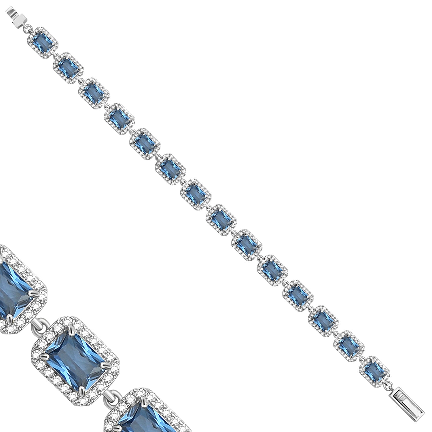 Luxuriöses Armband mit 16.8 ct Blau Topas & 1.40 ct Created Diamond – 18K Gold veredelt, 925er Silber