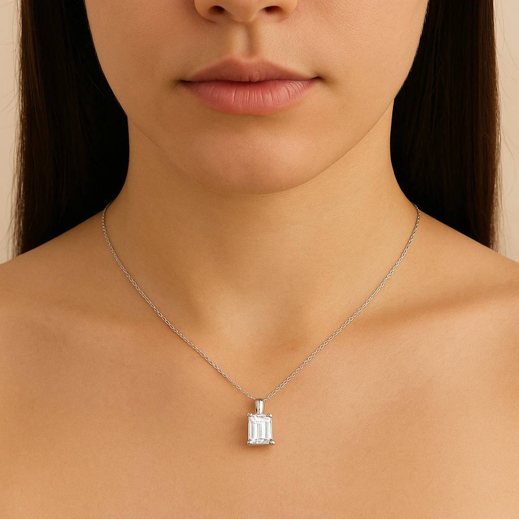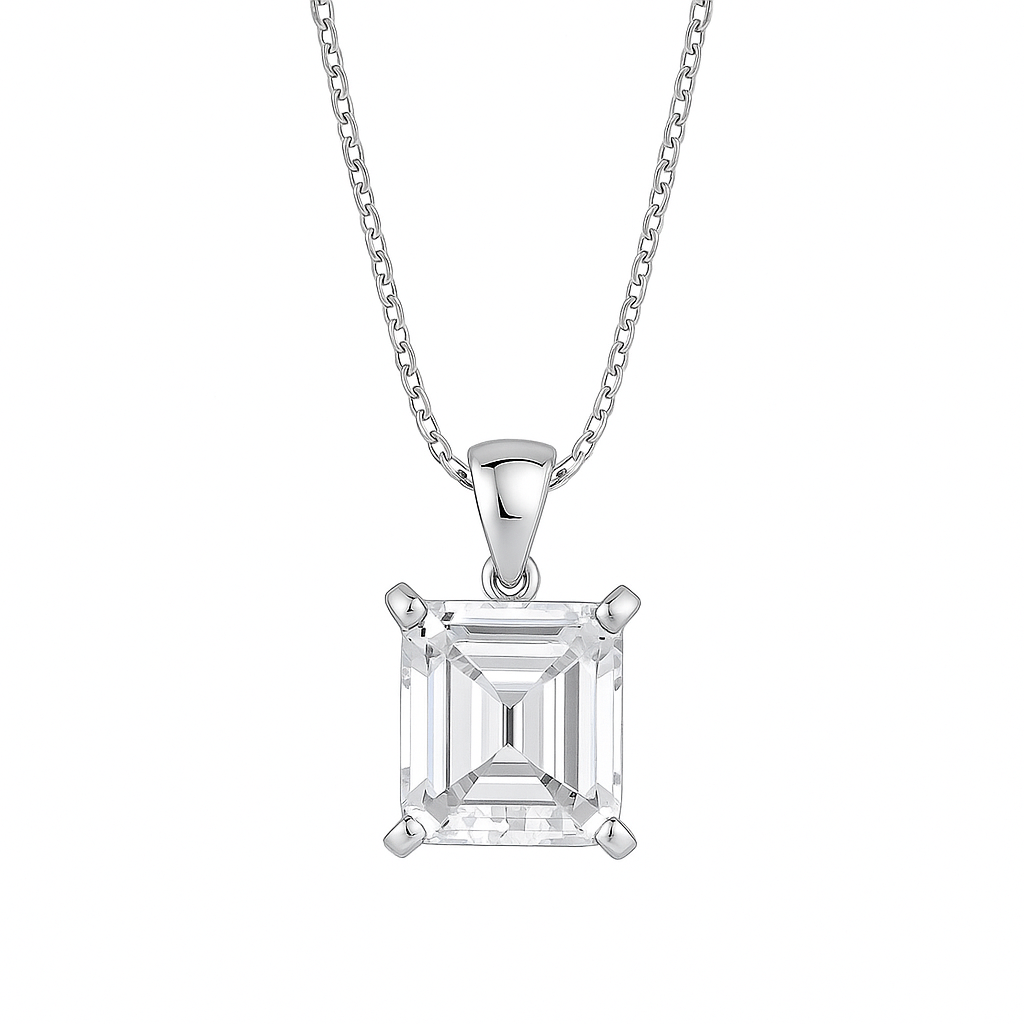 Elegante Eterna Square Collier 3.0 ct Sky Diamond – 925er Silber, 18K Echtgold veredelt, 42–45 cm verstellbar