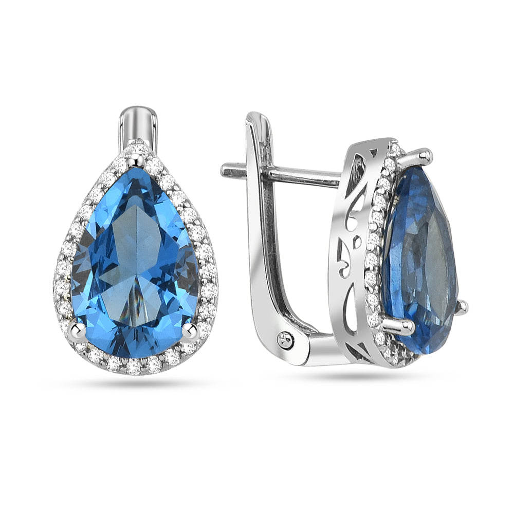Exklusive Ohrringe mit 8.0 ct Blau Topas & 0.30 ct Created Diamond – 18K Gold veredelt, 925er Silber für luxuriösen Glanz