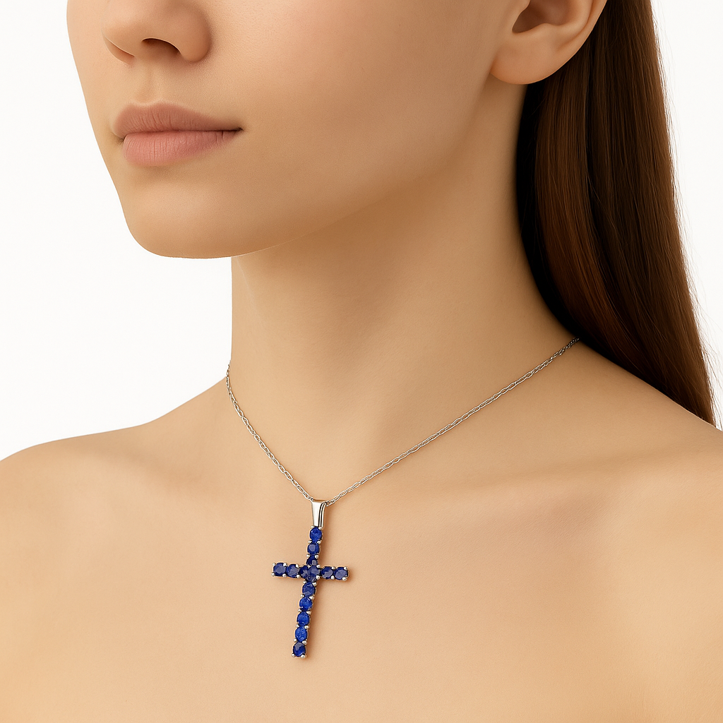 Divine Blue Cross Collier 2.2 ct Saphir 925er Silber – Rhodiniert und 18K Gold Veredelt