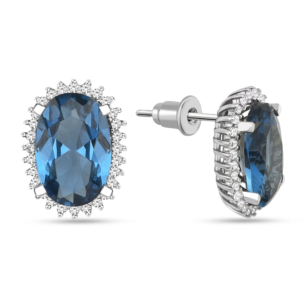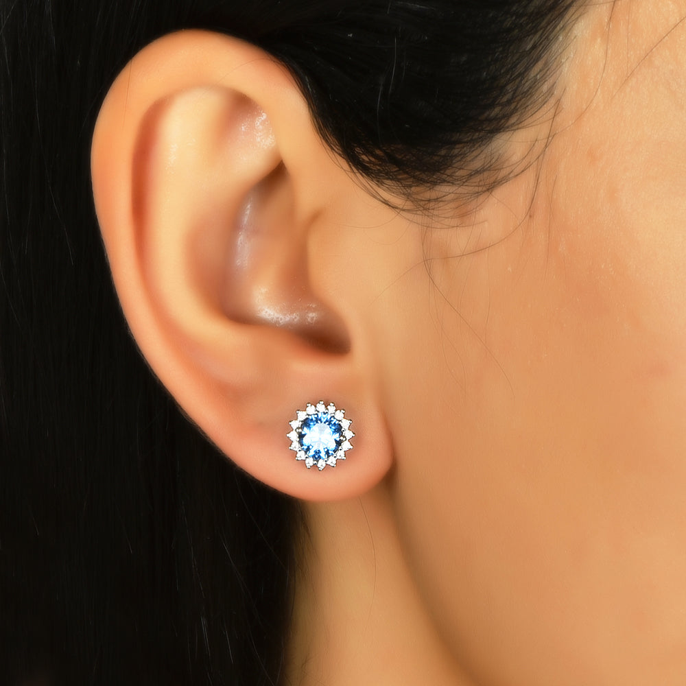 Stilvolle Ohrstecker mit 2.5 ct Blau topas & 0.42 ct Created Diamond – 18K Gold veredelt, 925er Silber für edle Akzente