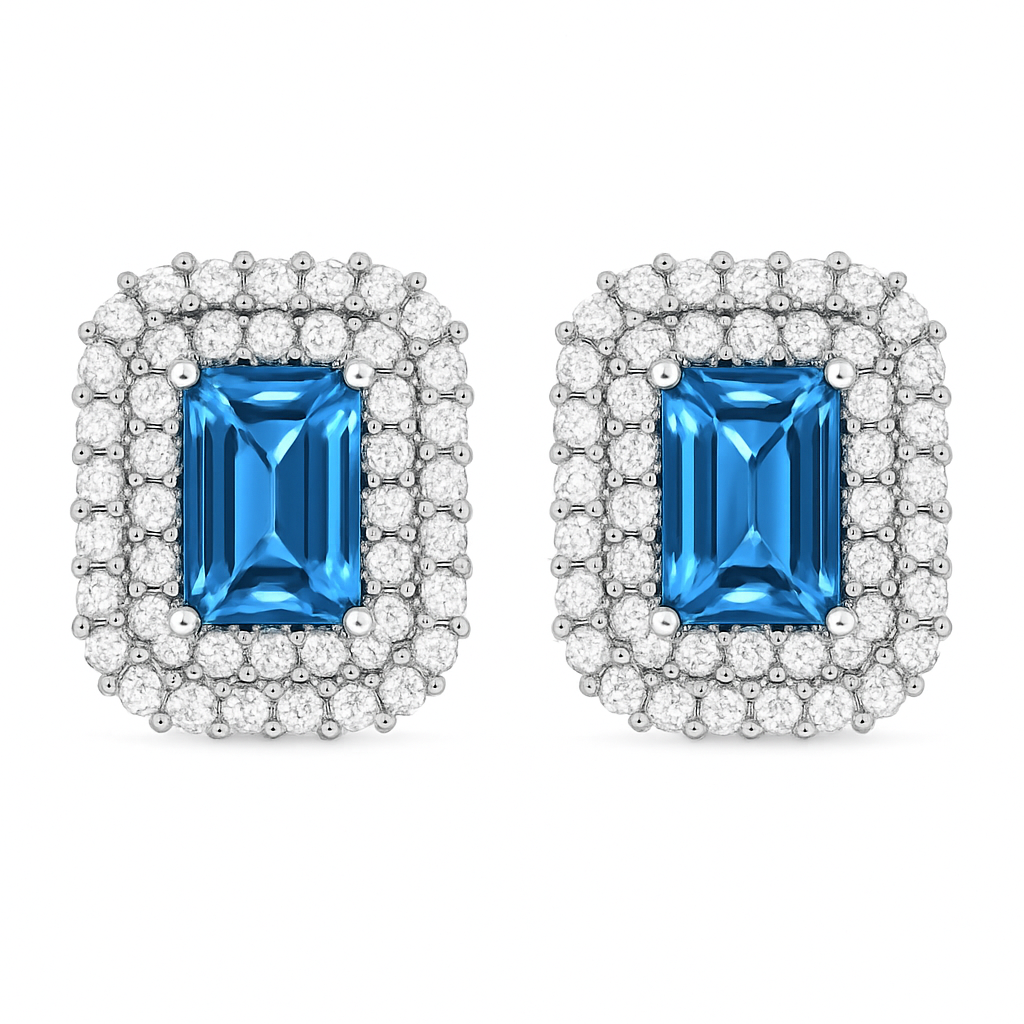 Elegantes Damen-Ohrring mit 2.4 ct Blau Topas & 0.46 ct Created Diamond – 925er Silber, 18K Gold veredelt
