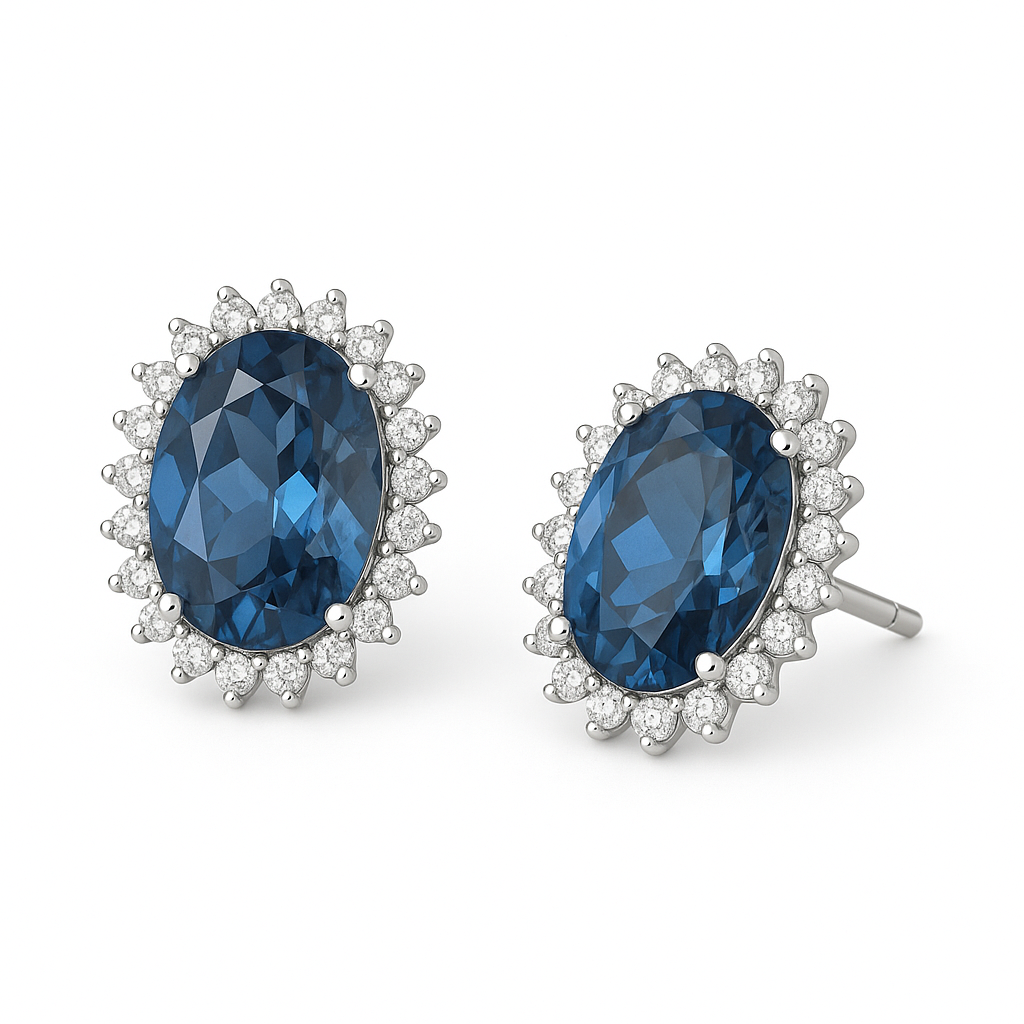 Exklusive Ohrstecker mit 6.5 ct Blau Topas & 0.90 ct Diamant – 18K Gold & 925er Silber für strahlende Eleganz