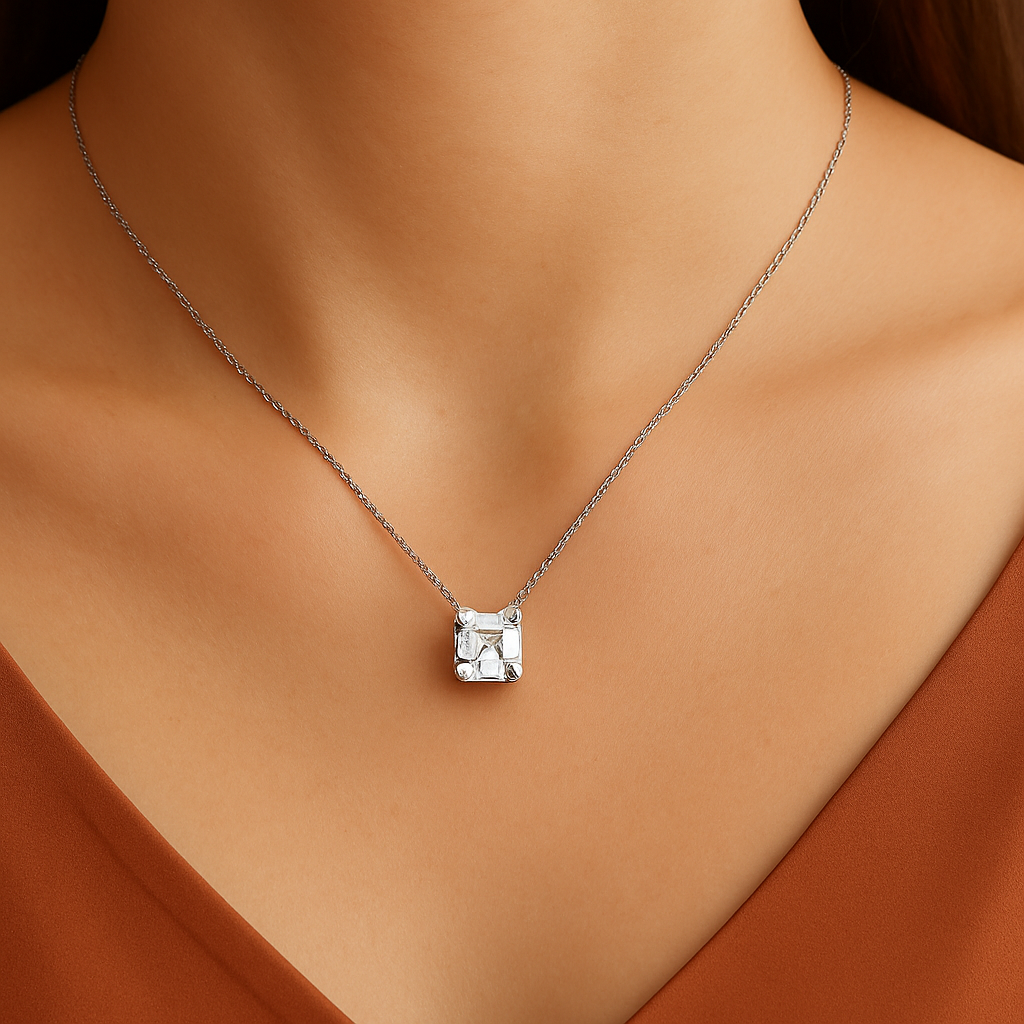 Elegantes Aria Square Collier 3.0 ct Sky Diamond – 18K Echtgold veredelt & 925er Silber